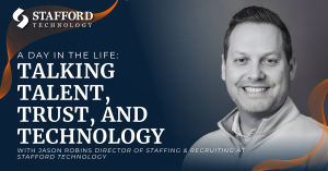 Jason Robins has been in recruiting for ten years. As Director of Staffing & Recruiting at Stafford Technology, he leads the charge on finding IT talent across a wide spectrum: help desk, infrastructure, network engineers, sys admins, developers, project managers, cloud solutions, and more. We spent some time with Jason to talk through what his days actually look like, what drives him, and why communication might just be the most underrated skill in recruiting.